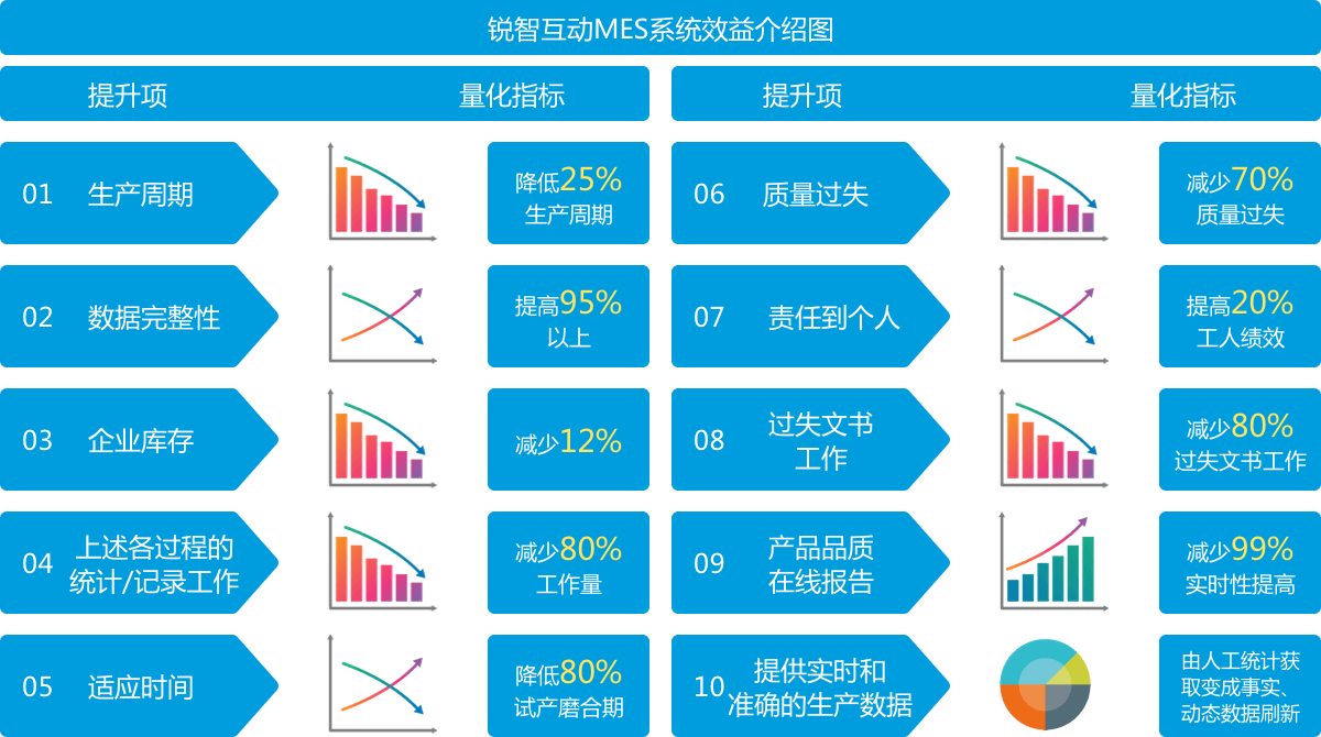 锐智互动MES定制开发可根据工厂实际运转方式灵活配置,工厂中的每个角色都可以快速的获取协作所需的数据信息,帮助您更好的改善实际生产效率和质量,通过对生产需求、生产资源和生产目标全面掌握,充分激发信息透明优势,让您更有信心的去面对各种生产难题!实现数据驱动制造,完成智能工厂升级。